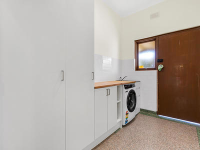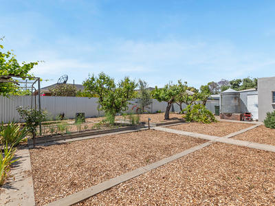 The main bathroom is a tasteful blend of both modern and character appeal. The bathroom features a separate shower alcove, a bath and vanity, and offers neutral colour tones with the original freshly polished Terrazzo floors being a real feature, plus a second, updated bathroom. There is a large spacious laundry, providing access to the roof via a pull down ladder, rear access to the low maintenance garden and outdoor entertainment area. Whether hosting family gatherings, BBQs, or special occasions, this space is perfect for creating lasting memories with family and friends overlooking beautiful low maintenance lawns, plus ample space for one to have your very own vegetable garden all surrounded by lemon, lime, pear, orange, apple and mandarin trees . The front garden has new garden beds and lawn, and is fully equipped with new automatic sprinkler system.
