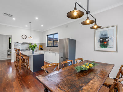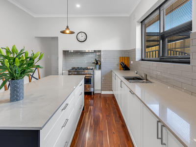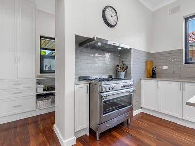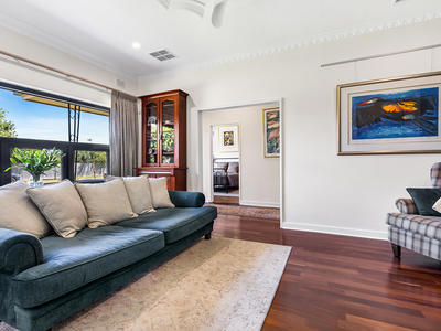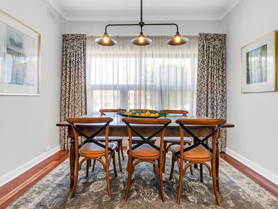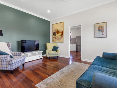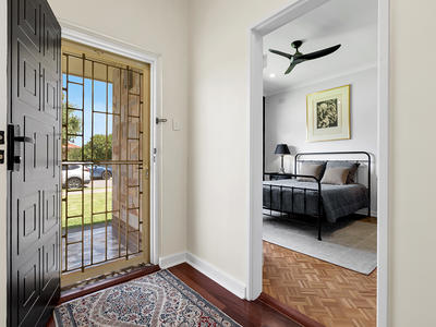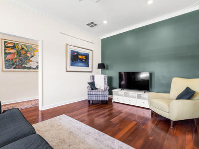 As you step inside, polished jarrah timber floorboards, lofty ornate ceilings, and high timber skirting boards welcome you, preserving the home's character while providing a warm and inviting ambiance.