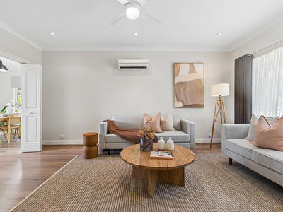 The well-presented home offers impressive wide corridors, a separate spacious lounge that includes reverse cycle air conditioning and a practical study nook. The updated kitchen features gas cooking and overlooks a casual meals/dining area. The main bedroom is equipped with reverse cycle air conditioning, while all bedrooms have built-in robes and are serviced by a sparkling, updated main bathroom.