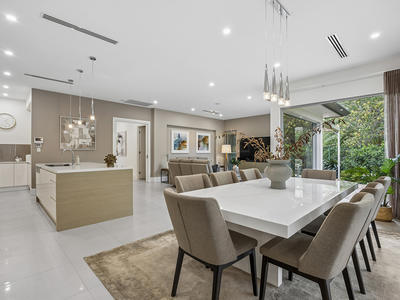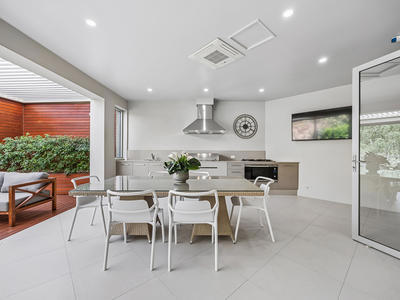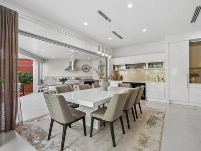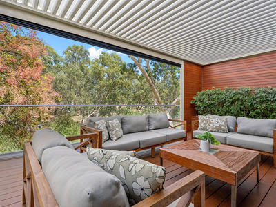 Café doors blur the line between indoor and outdoor living, opening to a sensational, all-season alfresco complete with full outdoor kitchen and BBQ. This flows through to a decked entertaining area with automated blinds and an opening roof verandah, creating the perfect setting for year-round entertaining against a tranquil parkland backdrop.