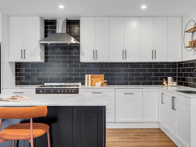 Sleek, contemporary kitchen with stone tops, quality finishes and appliances